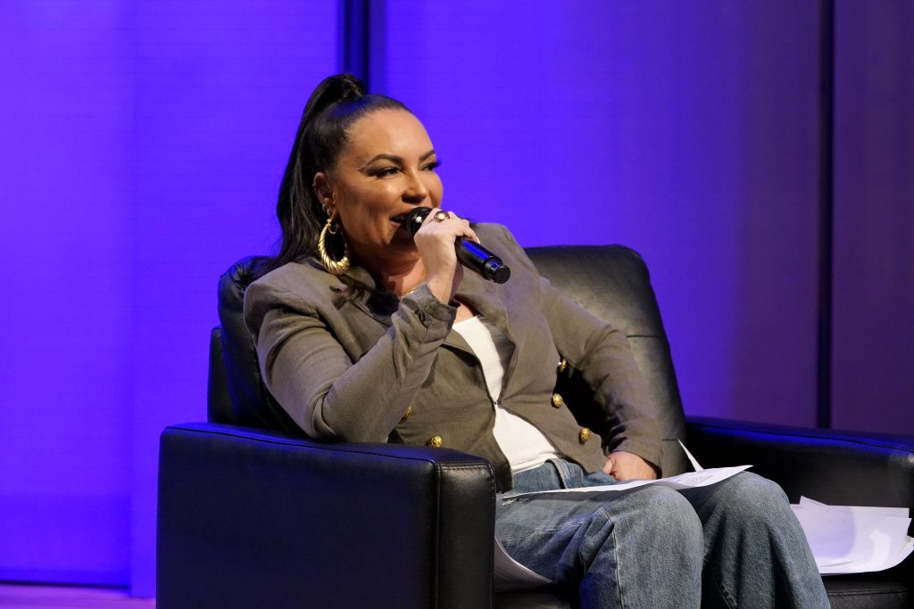 NEW YORK, NEW YORK – MAY 17: Angie Martinez speaks onstage at the “Biography: Bobby Brown” And “Origins Of Hip Hop” NYC premiere event on May 17, 2022 in New York City. (Photo by Bennett Raglin/Getty Images for A+E Networks)
