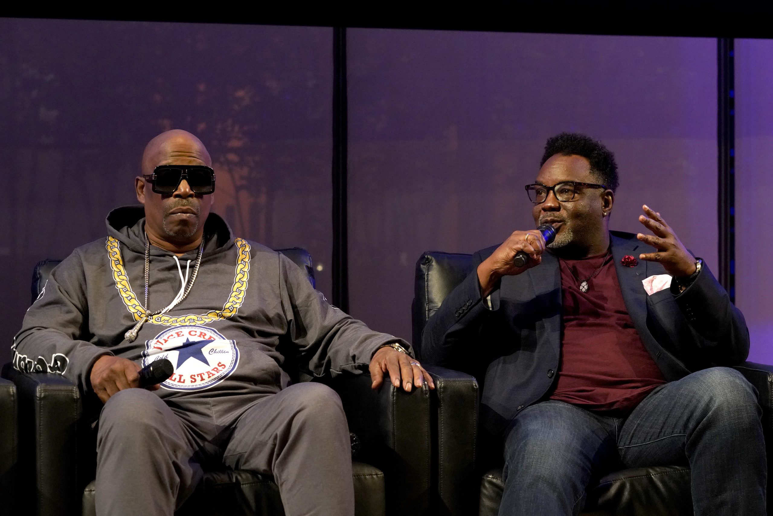 NEW YORK, NEW YORK – MAY 17: Grandmaster Caz and Kevin Swain speak onstage the “Biography: Bobby Brown” And “Origins Of Hip Hop” NYC premiere event on May 17, 2022 in New York City. (Photo by Bennett Raglin/Getty Images for A+E Networks)