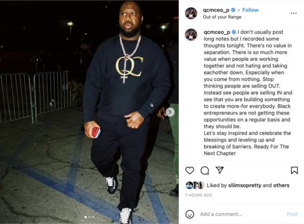 It’s not too often that Black-owned businesses get an opportunity to cash out on their investments at the level of the business deal between QC and HYBE America. However, it seems Coach K and Pee have received some backlash from people accusing them of “selling out.” Pee responded to the criticism with a post on Instagram.
